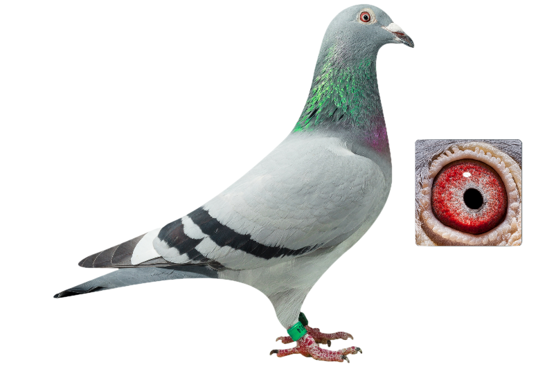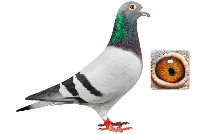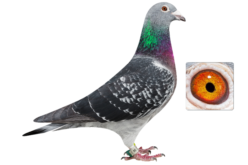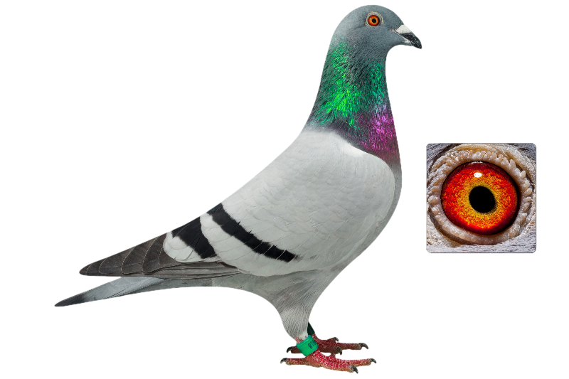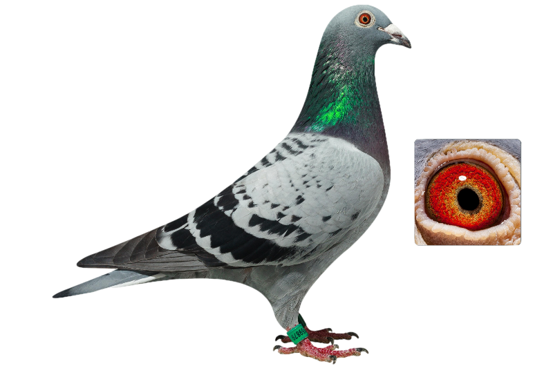 Deze jonge duif is een zoon van de uitzonderlijke doffer “Spartacus”, een absolute topper uit het hok van Combinatie Ebben. “Spartacus” bewees zijn klasse op het hoogste niveau door winnaar te worden van zowel de halve finale als de finale (500 km) van de AS Golden Winterrace in Griekenland. In de finale won hij met een indrukwekkende voorsprong van maar liefst 28 minuten, wat zijn uitzonderlijke kwaliteit onderstreept.